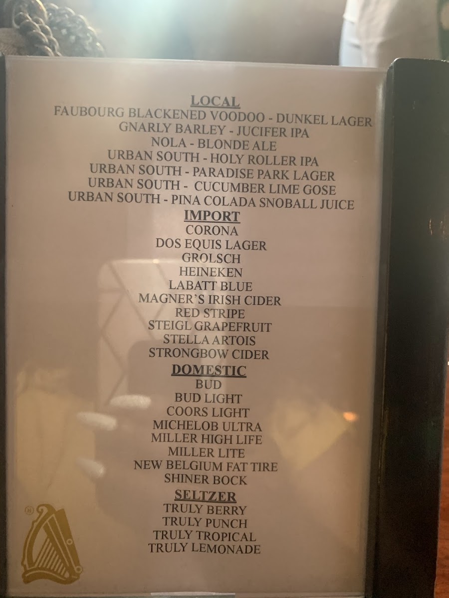 Ryan's Irish Pub Inc, nestled in the heart of New Orleans at 241 Decatur St, captures the true spirit of an authentic Irish pub blended with the vibrant energy of the city. This lively spot is a haven for both locals and travelers seeking a warm, welcoming atmosphere paired with expertly crafted cocktails and a well-curated beer selection. Although Ryan’s does not serve its own food, the staff goes above and beyond to enhance your experience by recommending nearby hidden gems for casual, affordable dining—especially seafood, as recommended by their knowledgeable bartender Carly.
